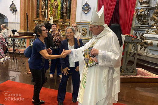 O editor da Revista Campo&Cidade, João José “Tucano” da Silva, entregou pessoalmente um exemplar da edição da “Vitivinicultura e suas histórias” ao bispo emérito da Diocese de Jundiaí/SP, Dom Vicente, após a missa da 12h, em que ele celebrou na última quinta-feira, dia 22 de janeiro de 2026, na Igreja Matriz Nossa Senhora da Candelária.